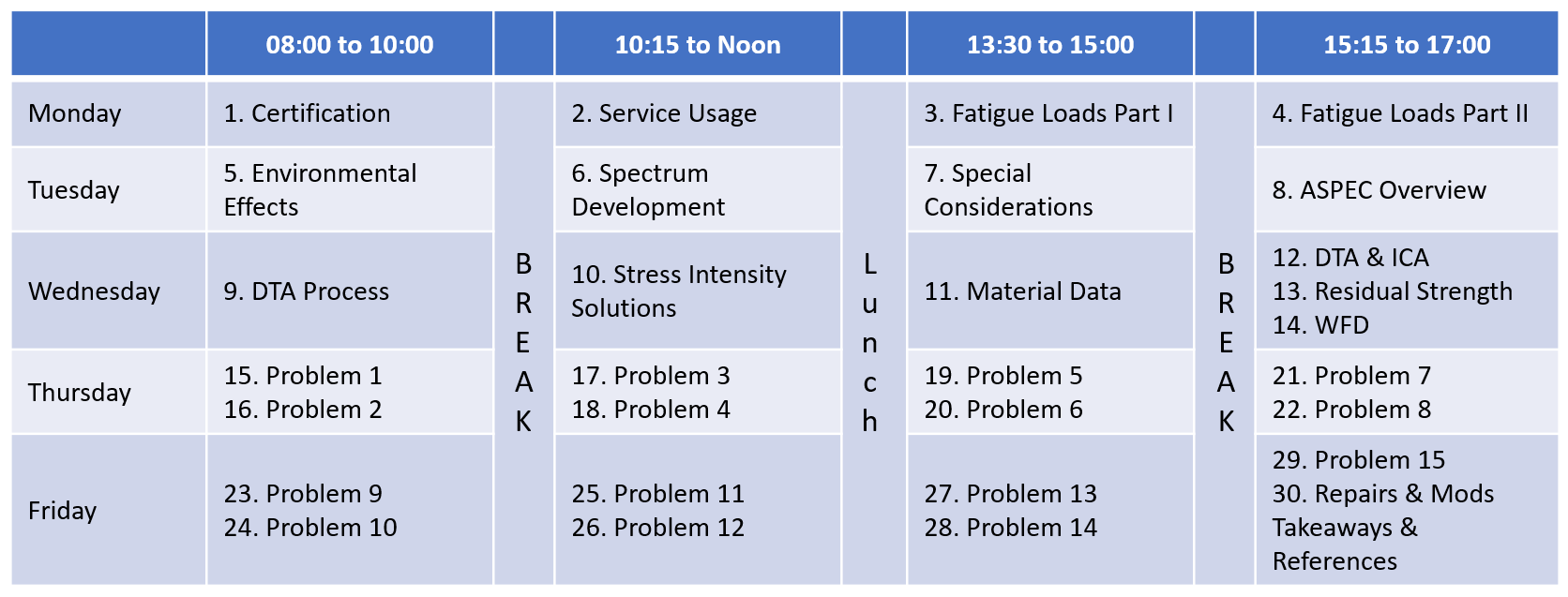 This course is for the engineering professional currently working on aircraft structures damage tolerance evaluations for civil or military aircraft.